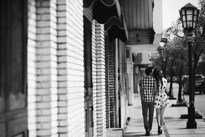 Tak harus di tempat wisata, kamu juga bisa melangsungkan foto prewed di kawasan Jalan Braga yang berada di pusat perkotaan.