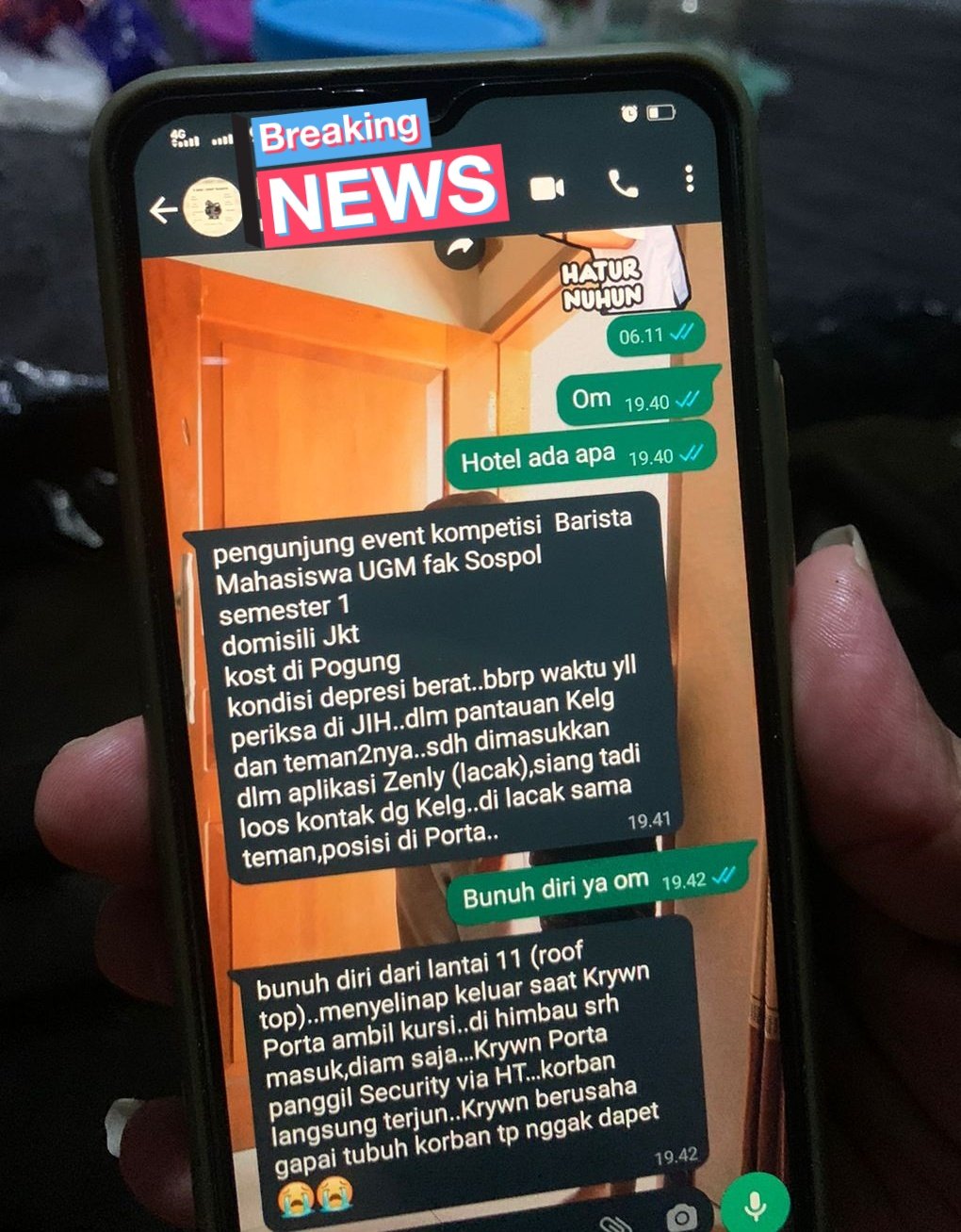 Diketahui kemudian, TSR adalah seorang mahasiswa baru yang sedang berkuliah di Universitas Gadjah Mada Fakultas Ilmu Komunikasi.